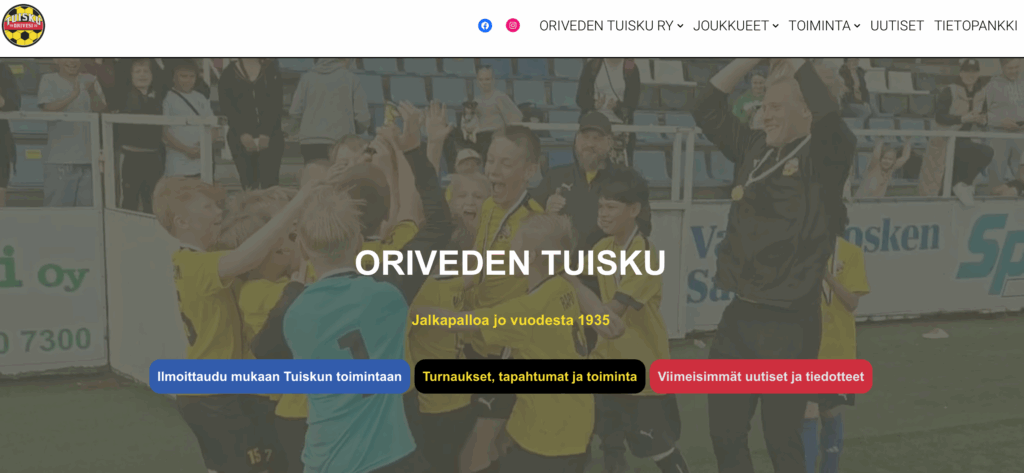 Oriveden Tuiskun nettisivut on nyt 15.10.2025 saatu siihen malliin, että ne avataan pysyvästi. Uusien sivujen suora osoite on https://orivedentuisku.net. Vanhasta osoitteesta on pysyvä uudelleenohjaus uuteen osoitteeseen joten, jos sinulla on kirjanmerkeissä vanhan sivuston osoite saattaa uusi sivusto pyytää sen päivitystä. Sivuille tulee vielä syksyn 2025 aikana YHTEYSTIEDOT -sivu. Tietosuojarekisteri päivitetään myös vielä vuoden 2025 loppuun mennessä.